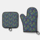 Peacock Paisley Pattern Blue Oven Mitt & Pot Holder Set