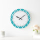 Custom designer wall clock features an elegant and Moroccan quatrefoil tiles pattern vector illustration.