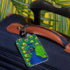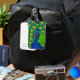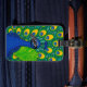 Peacock themed luggage tag to fly in style to your exotic vacations.