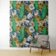 Hand- drawn pattern with peacocks and various roses on a dark background