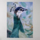 From an original 5x7 oil painting by Brenda Thour of a peahen portrait. A peahen is a female peacock. In beautiful teals and blues with a leafy abstract background. Copyright by Brenda Thour 2012.