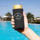 Peak Perfection, black, mountain ski / snowboard resort crest can cooler. Personalize with the year of your ski /snowboard trip, resort name and location. Perfect for a group destination winter resort trip or as a gift to remember a past trip. Designed to match our Peak Perfection Crest Collection.