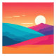 This whimsical artwork captures the beauty of a vibrant sunset over snow-capped mountains. The rich colours and playful style are sure to add a touch of magic to any room.