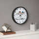 The size of the clock is dramatic and the abstract alcohol ink design is soothing and intricate at the same time. I chose the black frame that adds pop to the blue and gold design. The gold printing would be better in a slightly darker or larger font. I love it and I’m looking for just the right place in ny new apartment. I would recommend this clock for a personal gift or a present. I feel that the quality is excellent for the money! I’m a bit of a clock nut so I’m pretty particular about my purchases. The clock is larger in diameter than many if the clocks I have, so it stands out very well. I think a slightly darker printing color and a moderately larger size would best suit a professional decor or add more impact in a work place item.