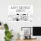 Celebrate in classic Peanuts style with this fun and customizable birthday colouring poster featuring Charlie Brown, Snoopy, Woodstock, Lucy, Linus, Sally, Peppermint Patty, and friends all gathered together in a cheerful outdoor scene. The bold "Happy Birthday" message can be personalized with any name, making it a special party decoration. Perfect as an interactive birthday activity, kids can enjoy colouring in their favourite Peanuts characters while celebrating.