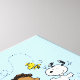 Check out this lineup of the Peanuts gang together, featuring Schroeder and Lucy, Linus with his blanket, Charlie Brown and his sister Sally, Pigpen, Franklin watching Snoopy dance, and Woodstock flying overhead.