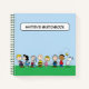 Check out this lineup of the Peanuts gang together, featuring Schroeder and Lucy, Linus with his blanket, Charlie Brown and his sister Sally, Pigpen, Franklin watching Snoopy dance, and Woodstock flying overhead.
