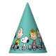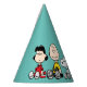 Check out Lucy, Charlie Brown, Snoopy, Sally, and Linus sitting together in a row.