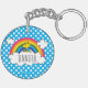 Cette oeuvre d'art mignonne Peanuts bleu et blanc pois pois présente le Woodstock flottant sur un arc-en-ciel et un nuage.