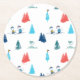 Peanuts | Winter Skiing the Slopes Pattern Round Paper Coaster