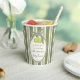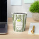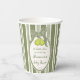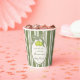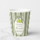 Pear sage green retro stripes baby shower personalized paper cups, retro oval frame hand drawn preppy bow pear baby shower monogrammed paper cups, hand written whimsical baby shower personalized coffee cups, pear baby shower party supplies personalized baby shower table decor