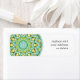 This fun kaleidoscope has a green base colour and lighter green almost yellow pear shapes.