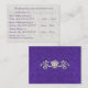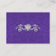 Pretty pearl white swirl damask wedding response card, ready to personalize with your wedding reception information. Graphics of lush purple damask, silver looking floral jewel decoration and pretty pearl white swirl damask designs decorate this beautiful mini RSVP card. Great with our matching purple and silver damask wedding invitations and products.