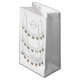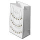 Small wedding anniversary gift bag with cream pearl heart bunting and white background.