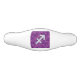 A mother of pearl Sagittarius zodiac symbol on a vibrant fuchsia pink digital camouflage design print background. A modern urban racy design for a great custom birthday gift idea.