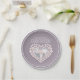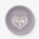 Pearl 30th wedding anniversary party disposable paper plates. Great to add a personalized touch to special pearl anniversary parties, dinner parties and informal thirty years anniversary gatherings. Personalize with your happy couples names and photo in the diamonds heart effect photo frame. Grey pink and pearl heart effect art and design by Sarah Trett for www.mylittleeden.com