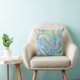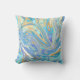 Pearlescent Aqua & Gold Liquid Marble Throw Pillow