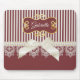 A vintage Victorian style mousepad featuring deep red and creamy white coloured vertical stripes embellished with an image of a cream coloured ribbon tied into a sweet bow affixed to a string of elegant pearls. Personalize this elegant design by adding your name to the ornate gold edged frame. NOTE: This is a flat printed image. The bow, lace, pearls, and gold frame are NOT real.