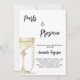 A modern, stylish and glamourous invitation for a Pearls and Prosecco Bridal Shower. A white background with a glass with bubbles and pearls. The name is written with a modern hand lettered style script. Personalize and add your party details.