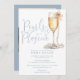 This dusty blue elegant script pearls and prosecco bridal shower invitation can be personalized with all your special event information and photo and registry QR code on the reverse. Designed by Thisisnotme©