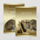 Woman's black and gold high heel shoes birthday party RSVP. This elegant black and gold RSVP is easily customized for your event by simply choosing the "Customize it!" button to begin adding your event details, font style, font size & colour, and wording. Please note - all of the card and invitation designs you will find on Zazzle are printed graphics with no actual jewels, bows, raised, embossed, or added parts or pieces.