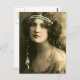 Vintage photograph of a pretty young woman with long hair. She has long strings of beads hanging over her shoulders and pearls in her hair and over her forehead