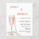 A modern, stylish and glamourous invitation for a Pearls and Prosecco birthday party (any age) A white background with a glass, flute with pink bubbles and pearls. The name is written with a modern hand lettered style script. Personalize and add your party details.