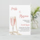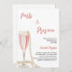 A modern, stylish and glamourous invitation for a Pearls and Prosecco Bridal Shower. A white background with a glass with pink bubbles and pearls. The name is written with a modern hand lettered style script. Personalize and add your party details.