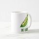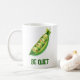 Cette tasse présente un design ludique de pois accompagné de la phrase "Peas be quiet,