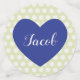 Celebrate twins' 1st birthday or baby shower with sweet pea green and blue hearts with baby boys' or baby girl's names. A beautiful addition to the 2 Peas in a Pod Twins collection by JoBliss.