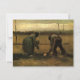 Peasant and Peasant Woman Planting Potatoes by Vincent van Gogh is a vintage fine art post impressionism daily life portrait painting featuring farmers, peasant farm workers planting their potato crops in the fields.