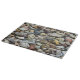 Close up photograph of pebbles on a beach printed on a glass chopping board.