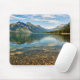 This photo features clear shallow water pebbles and mountains in Lake McDonald in Glacier National Park in Montana, United States.
