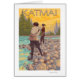 Women Fly Fishing - Katmai, Alaska - Poster Vintage voyage a été créé en 2007. Cette image représente des scènes de Katmai, AK.