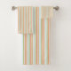 Belle à rayures, serviette de bain bleu, pêche et blanc, l'arrière - plan blanc peut être changée en n'importe quelle couleur pour correspondre à votre décor de bain maison.