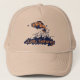 Casquette d'art stylisé de poisson volant orange et bleu foncé. Lit seulement la pêche. Un cadeau idéal pour un passionné de pêche à la mouche. Art original et design par Sarah Trett.