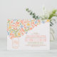 mignonne et moderne faire-part de mariage de bocal de pêche en mason avec fleurs de corail, fleurs, feuilles et coeur d'amour. Propre, élégante et décontractée invitation de mariage manuscrite, parfaite pour mariage campagnard rustique, mariage extérieure ou thèmes vintages mais modernes mariage.