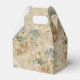 Gable style favour box with an image of brown vignettes of all things Paris amid pretty teal flowers on cream and tan. See the entire Cancan Favour Box collection in the PARTY FAVORS section.