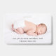 An adorable baby photo pediatrician badge in a modern style. Add your own newborn photo on a plain background so that type overlay can be viewed. Modern professional style.