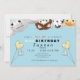 Young boy's birthday party Invitation. Animals Peeking over the top. Age on balloons. Watercolor.