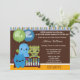Features adorable baby monsters in a crib in the nursery. Balloons display "It's a Boy!" or can be customized to your desired wording. Features: shades of BLUE/TEAL, GREEN/LIME and BROWN colour theme. This MonkeyHutDesigns baby shower invitation coordinates with the popular Peek a Boo Monsters Baby Crib Bedding set. It's such a cute theme and it's perfect for a BOY.