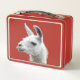 Peeking Llama Portrait on a Deep Red Background Metal Lunch Box