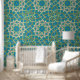 Peel and Stick Wallpaper Blue Graphic Circles Pattern. Renters homeowners interior designers can create a personalized look for any room.
