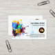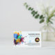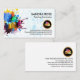 In a peeling white wallpaper cover, a colourful paint splatter covers the top corner. Your details are at the opposite end with your prestigious name and job title at the top. This is followed by a gold "home paint fan" logo you can use with the business name and contact details just underneath.