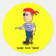A peg-legged pirate with a patch over his eye, a headscarf and a hook instead of a hand.