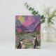 Mixed media collage style AI generated art of a couple of penguins at a mountain lake with wildflowers