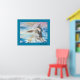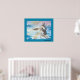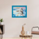 Une belle et élégante peinture d'un cheval blanc au milieu des vagues de la mer dans les tons de bleu avec un ciel rose. de ma collection d'animaux.Cette affiche a un cadre bleu.