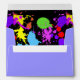 Neon Paint Splatter Enveloppes dans des couleurs vives de rouge, violet, vert, bleu et rose. La couleur de l'enveloppe peut être changée en n'importe quelle couleur de l'arc-en-ciel. Sélectionnez la taille de l'enveloppe qui convient à vos invitations. Des timbres, des invitations, des plaques en papier, des cartes de table et des serviettes de table sont également disponibles