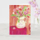 Cette carte fantaisiste représentant un bouquet de coeurs est une belle surprise dans la boîte aux lettres. L'image est une peinture à l'aquarelle multicolore d'un pichet débordant de fleurs en forme de coeur, d'une table recouverte d'un tissu rouge, d'un papier peint à coeurs et d'une chaise en bois en forme de coeur. À l'intérieur : Vierge AVIS : "Une carte si belle. Les couleurs sont si époustouflantes."