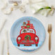 Pekingese Dog In Car With Santa Claus Paper Plate